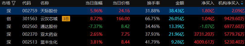 ②天际股份(002759),资金净额买入1.80亿元,所属板块:电池。上榜原因:日换手率达20%的证券。