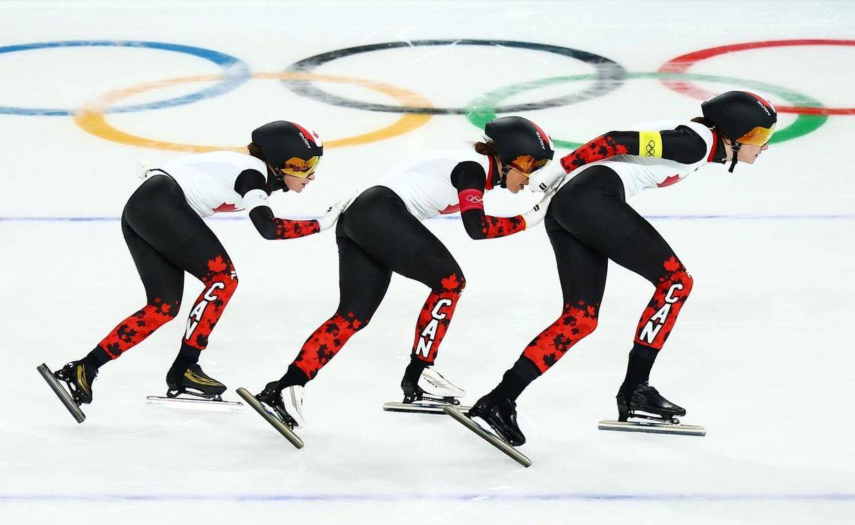 在接下来的速滑女子团体追逐赛决赛中,加拿大队以0.96秒的微弱优势险胜荷兰队,成功拿到了这个项目的金牌。