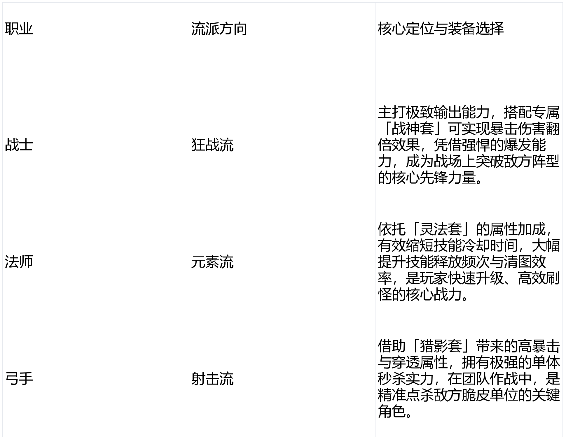 新区开启后,随着玩家等级逐步提升,需结合自身游戏习惯与团队作战需求,对职业流派进行精细化打磨,适配不同的战斗场景与副本挑战,以下为三大核心职业的专属流派指南,助力玩家在新区精准定位、快速成型。
