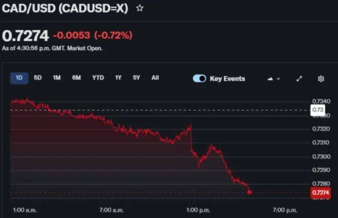受就业数据的拖累,加元兑美元的汇率在今天出现了大跌,跌幅目前超过0.7%。