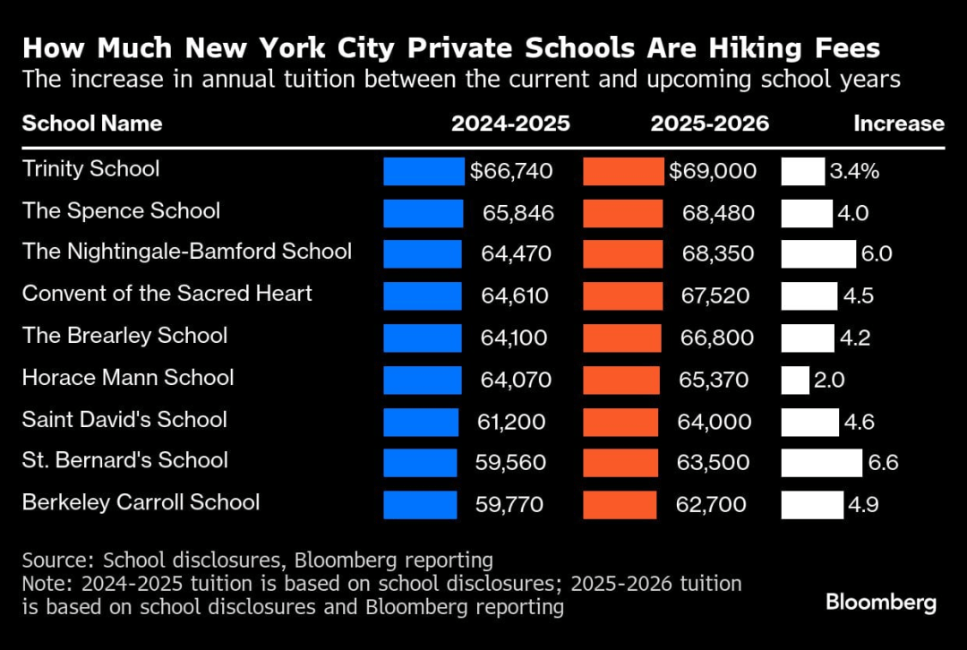 其次,运营成本涨得比通胀还快。纽约私校的学费中位数涨幅在4.7%左右,明显高于当下通胀水平。校园安保、健康饮食合同、教职员工的医疗保险和其他福利成本都在攀升,这些隐性账单不断累积,最终都摊到了家长身上。