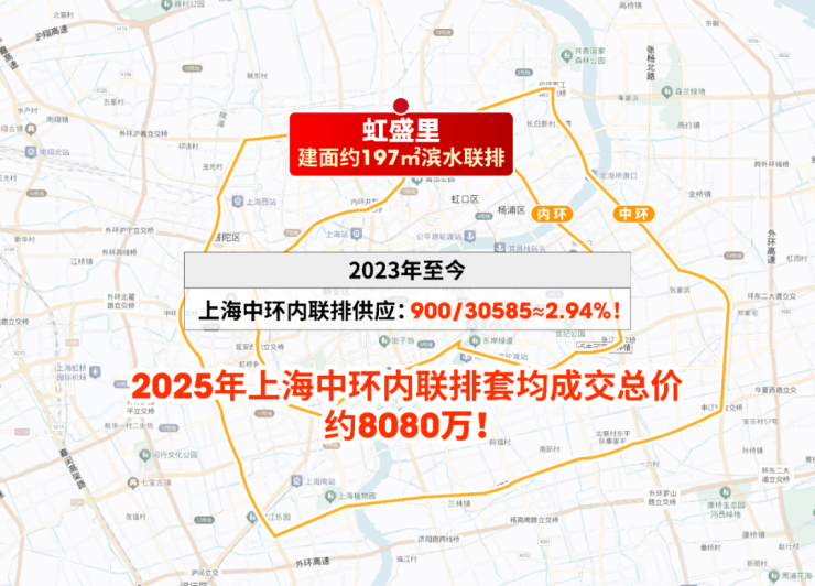 建面约197㎡滨水联排堪称中环稀缺藏品——2023年至今,中环内联排供应占比