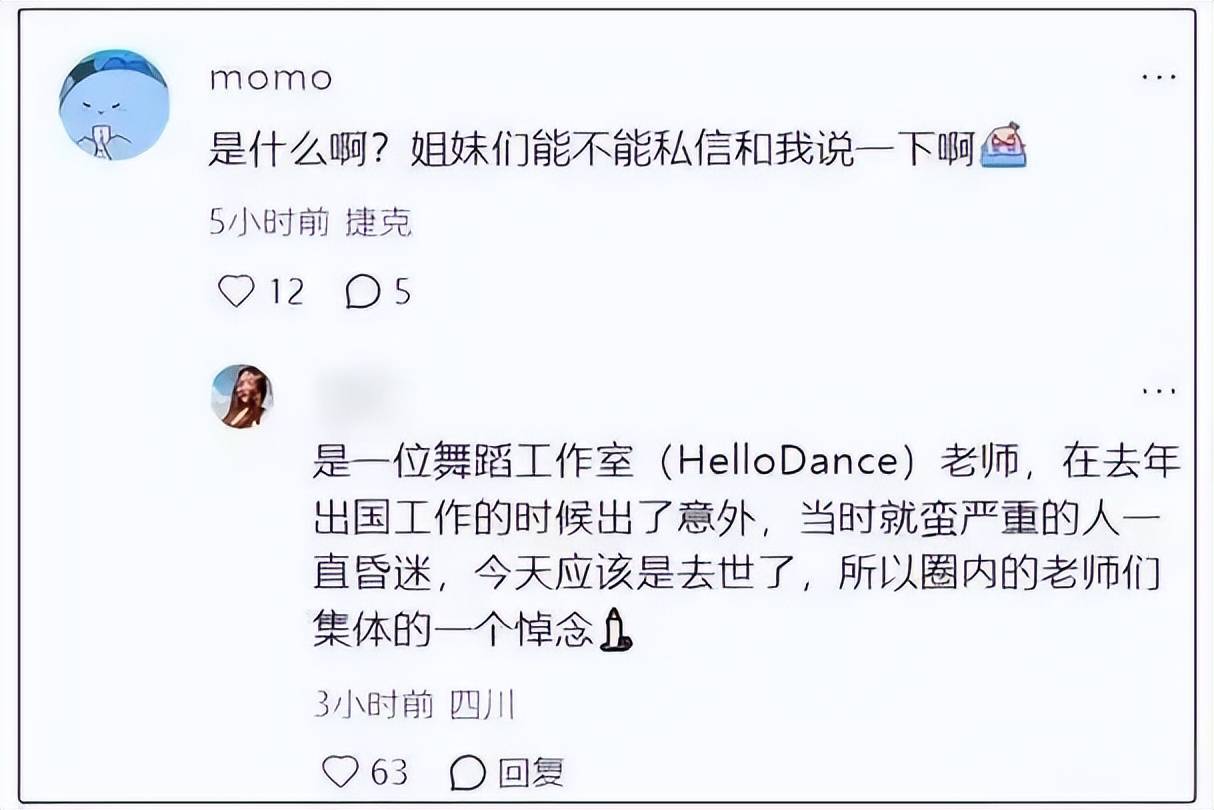 现代快报采访了家属,家属表示依旧在抢救中;红星新闻联系了舞蹈工作室和圈里的人,两边都确认了这个消息。圈子里的人大多心里有数了,微信群和朋友圈一下子都安静下来,大家都沉默不语。