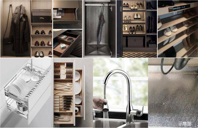 入户玄关柜与卫生间抽屉,采用 “编织纹理” 皮革包裹,指尖触碰到的不仅是材质,更是高定生活的仪式感。